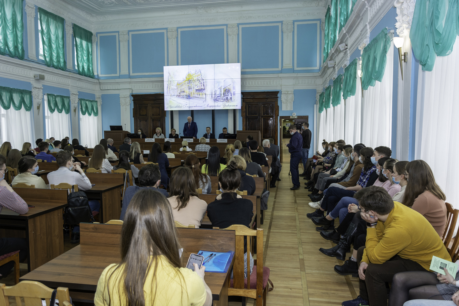 На встрече присутствовало более 100 учащихся 5 и 6 курсов. При этом мероприятие транслировалось онлайн, а для тех, кто не смог на нем присутствовать доступна запись, размещенная на сайте Ярославского медицинского вуза.